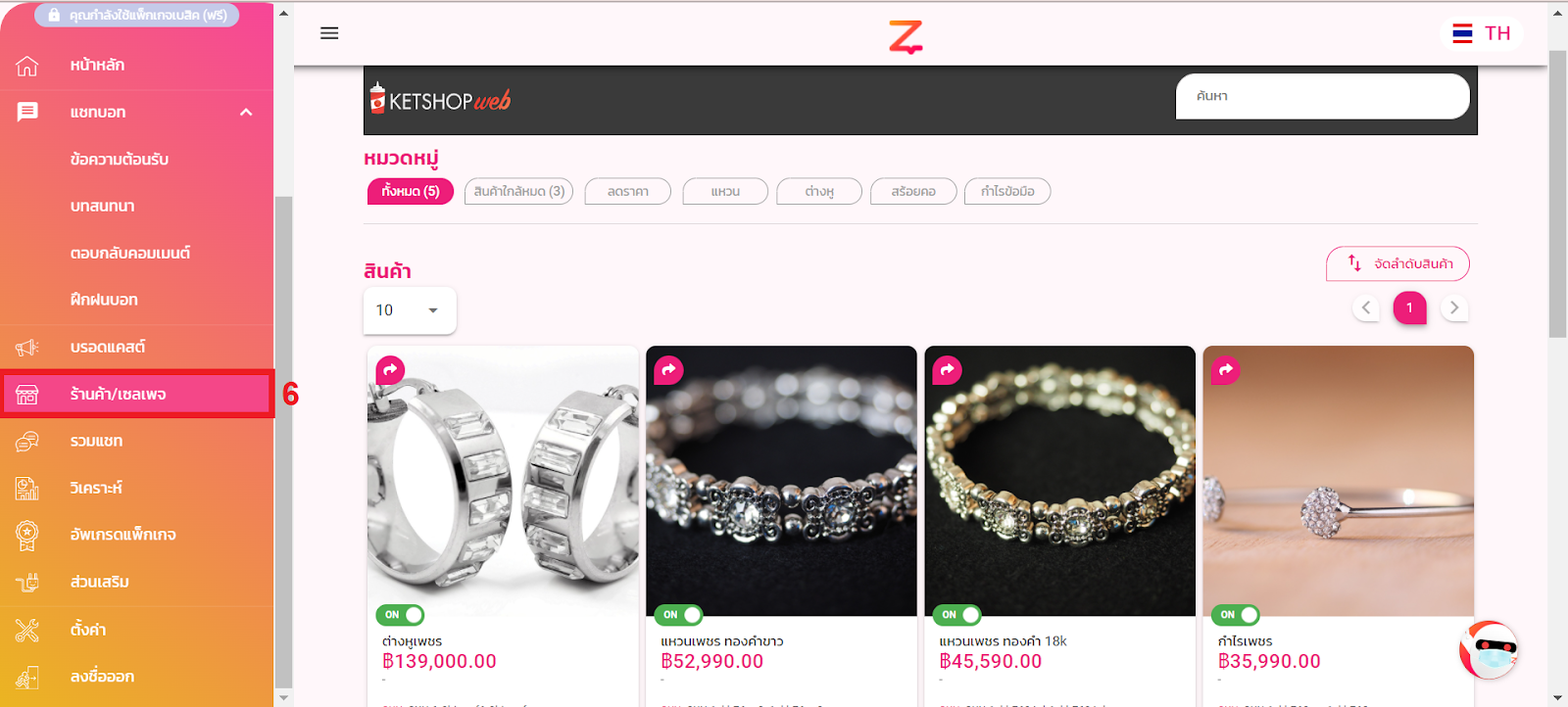 6.ทีนี่ก็ไปดูที่ หน้าร้านค้าครบวงจร ของเราได้เลย จะมีสินค้าที่เชื่อมมาจากฝั่ง Ketshop ขึ้นมาให้เราเลย